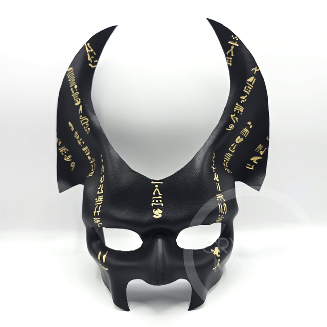 This Jackal mask with hieroglyphs is handmade from leather and is from my Matte black collection.