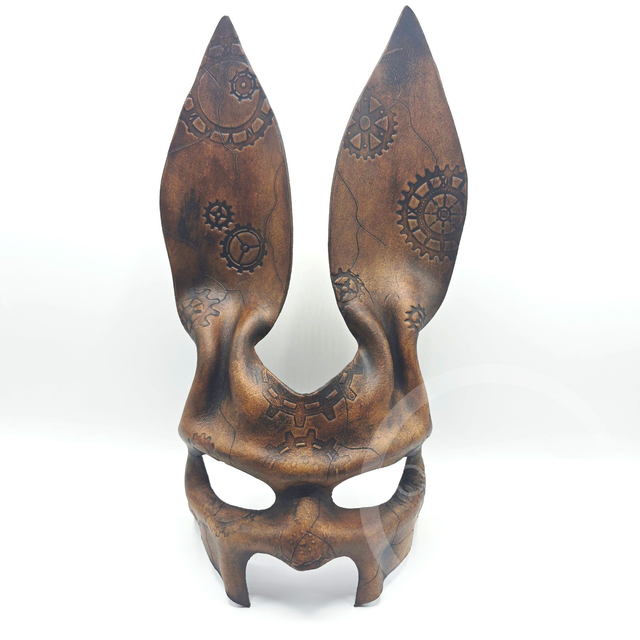 A beautifully crafted leather steampunk Stag mask with a clockwork pattern. I also created each stamp to ensure that all my masks stay unique.