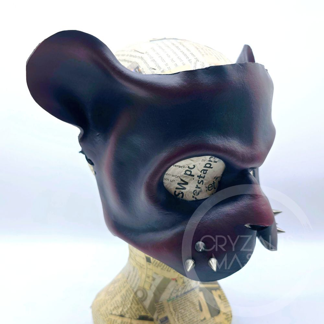 This Bear mask is made from 2.5mm - 2.9mm leather and fits snugly and comfortably against your face, allowing for hours of wear without discomfort. This mask has been finished off with coned rivets for whiskers.