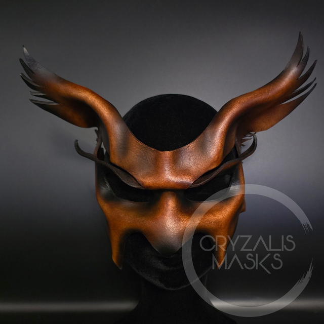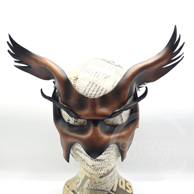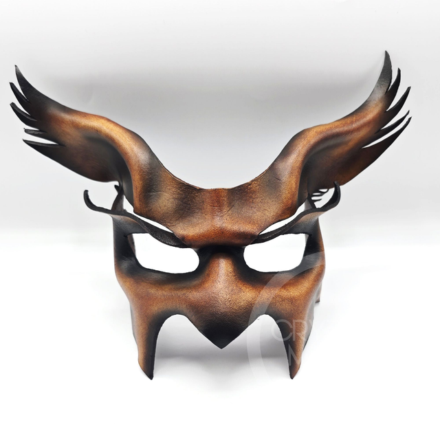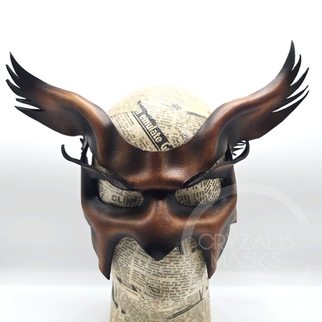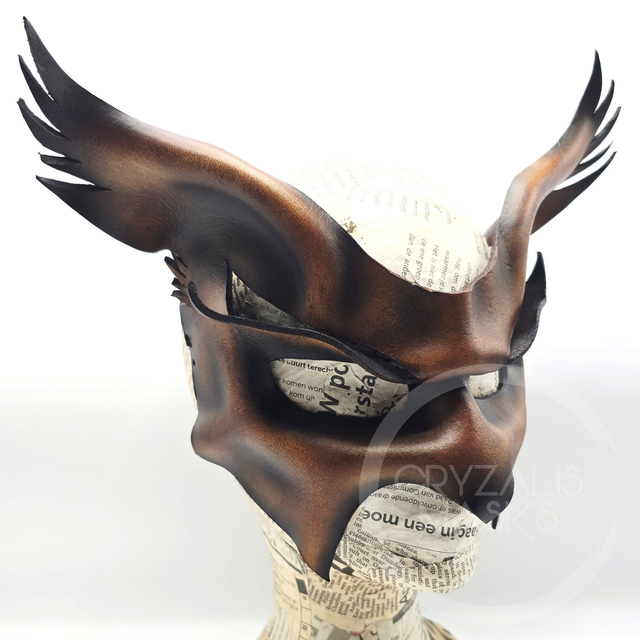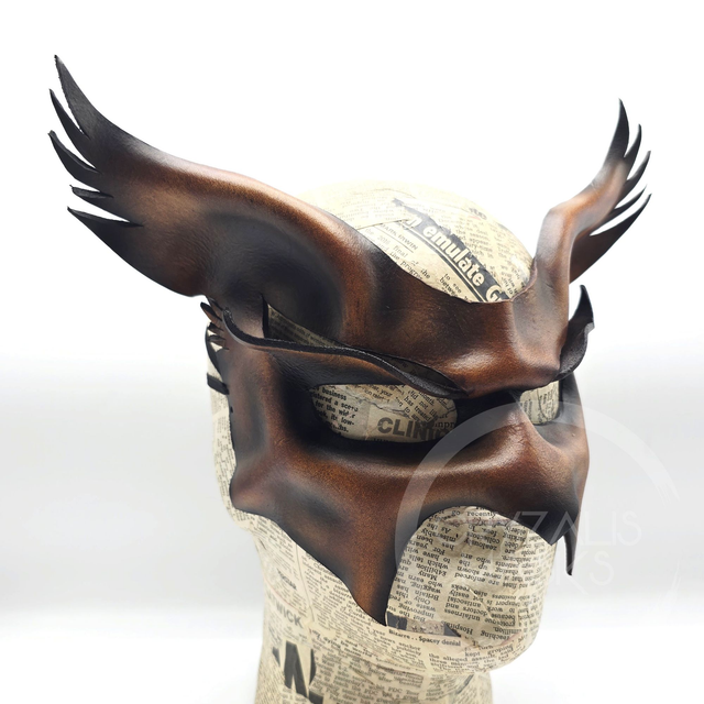 Introducing one of my new designs from my bird collection. The Owl mask is made from approx. 2.7mm natural tanned leather. This version is a mixture of brown and black. Other colours can be requested, please contact me beforehand for waiting times.