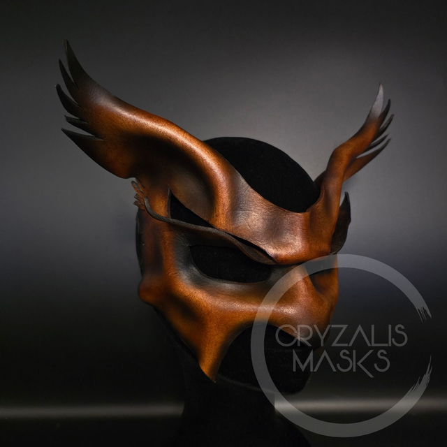 All Masks & Accessories made by Cryzalis are handmade from 2.2mm - 2.8mm natural tanned leather. The leather hides are personally selected before original designs are cut by hand.